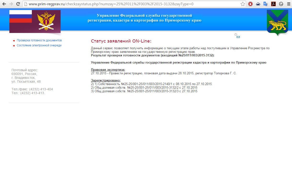 Проверка статуса регистрации договора участия в долевом строительстве (УФРС по Приморскому Краю)